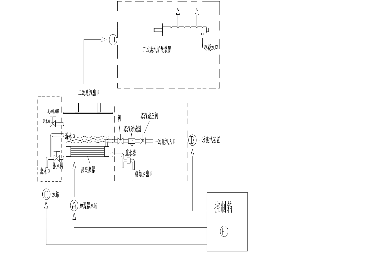 BHS系列二次蒸汽加湿器具有结构合理,使用方便,洁净加湿,控制精确,蒸汽分布均匀,能迅速在空气中被完全吸收等优点;广泛用于各个领域,如电子、制药、医院、菌类培养室、机房、纺织、烟草、印刷、宾馆、写字楼等领域及场所。